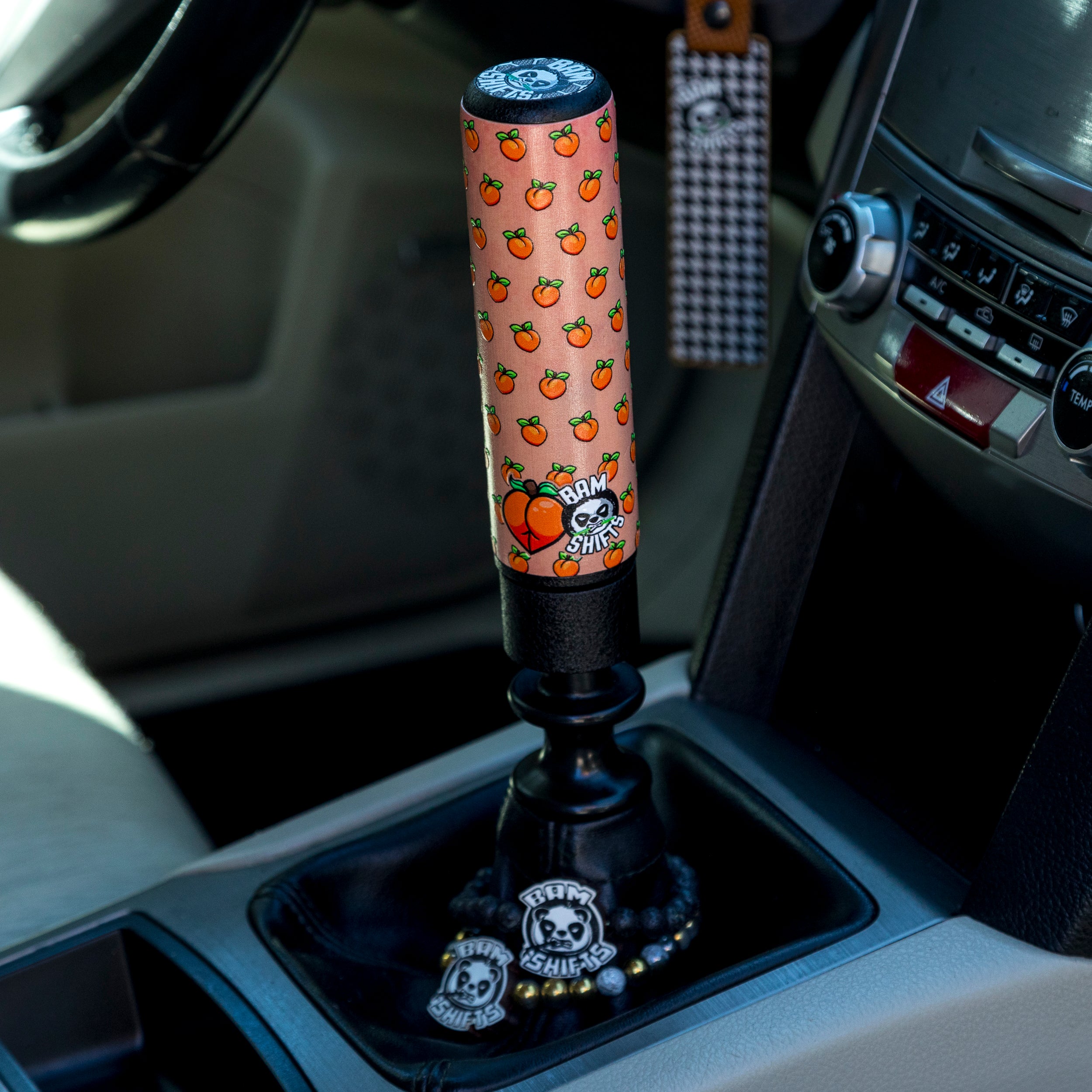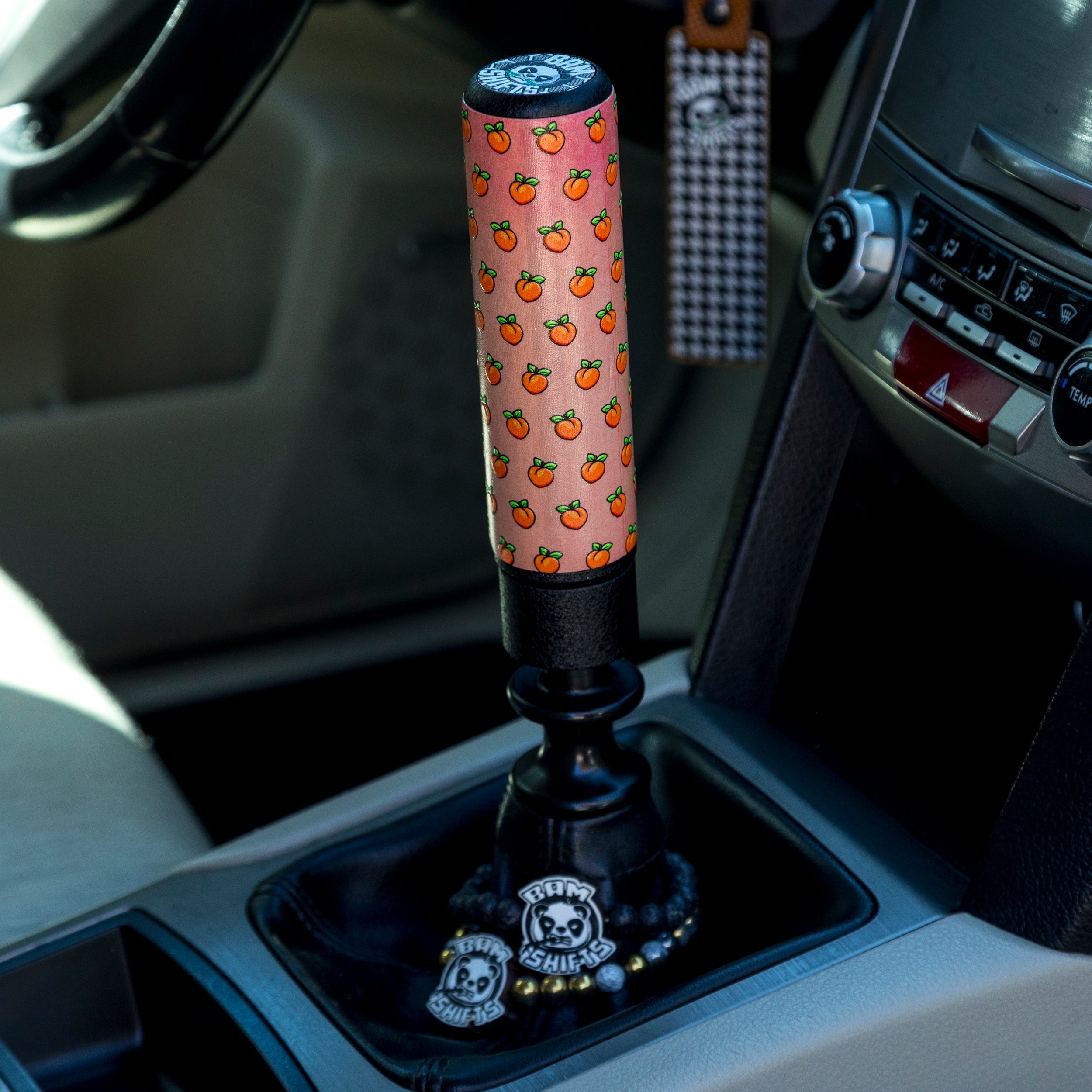 The Peachy Hybrid is an aluminum and bamboo shift knob designed to enhance your driving experience by customizing your Hybrid to your preference with our diverse selection of graphic grip options. Select the ideal Grip to complement either your vehicle's interior or your individual style! Furthermore, our innovative swappable Grip designs empowers you to effortlessly alter the appearance of your shift knob whenever you desire, ensuring your car maintains a vibrant and dynamic aesthetic.