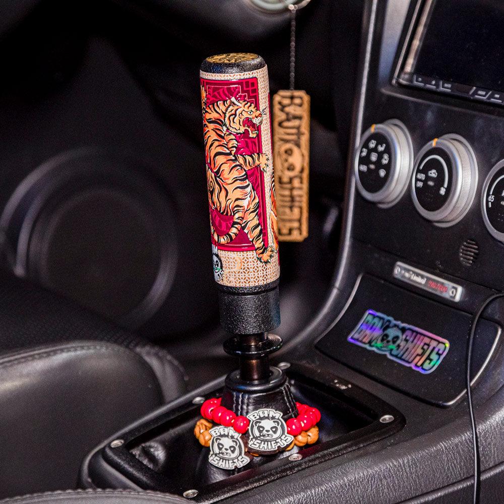 The "Tigers" Hybrid is an aluminum and bamboo shift knob designed to enhance your driving experience by customizing your Hybrid to your preference with our diverse selection of graphic grip options. Select the ideal Grip to complement either your vehicle's interior or your individual style! Furthermore, our innovative swappable Grip designs empowers you to effortlessly alter the appearance of your shift knob whenever you desire, ensuring your car maintains a vibrant and dynamic aesthetic.