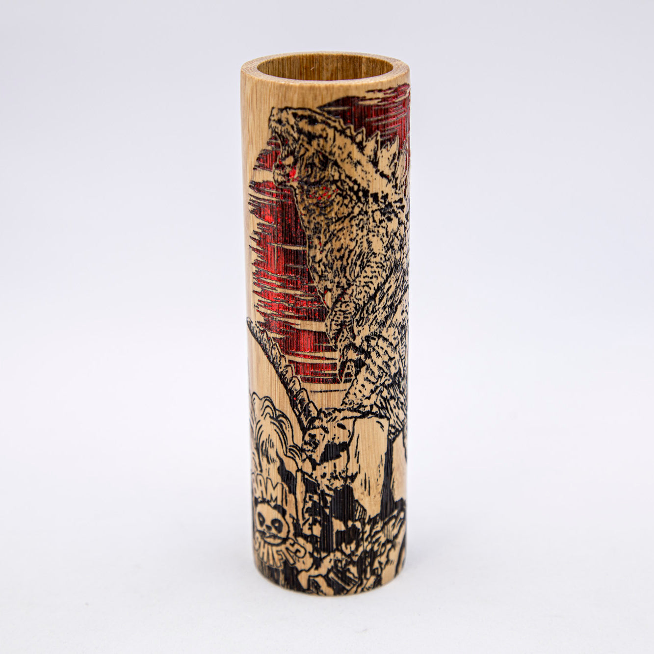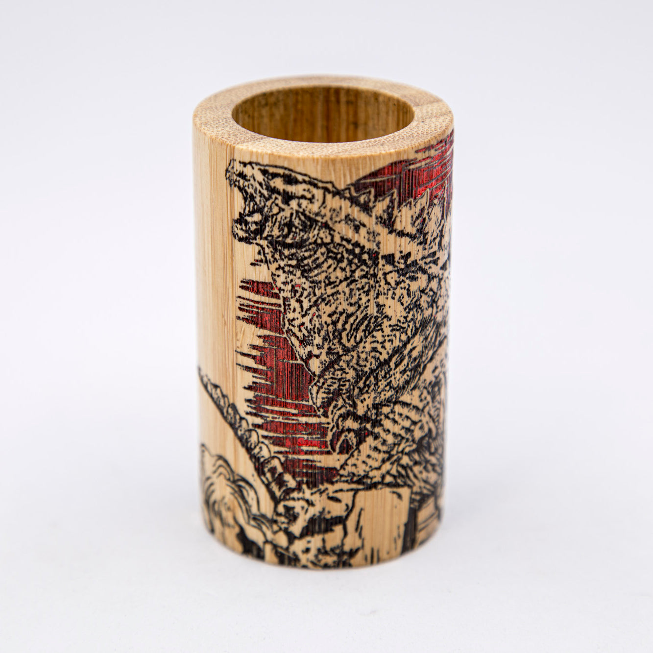 Engraved and Hand-painted, the Hybrid Godzilla is an aluminum and bamboo shift knob designed to enhance your driving experience by customizing your Hybrid to your preference with our diverse selection of graphic grip options. Select the ideal Grip to complement either your vehicle's interior or your individual style! Furthermore, our innovative swappable Grip designs empowers you to effortlessly alter the appearance of your shift knob whenever you desire, ensuring your car maintains a vibrant and dynamic aesthetic.